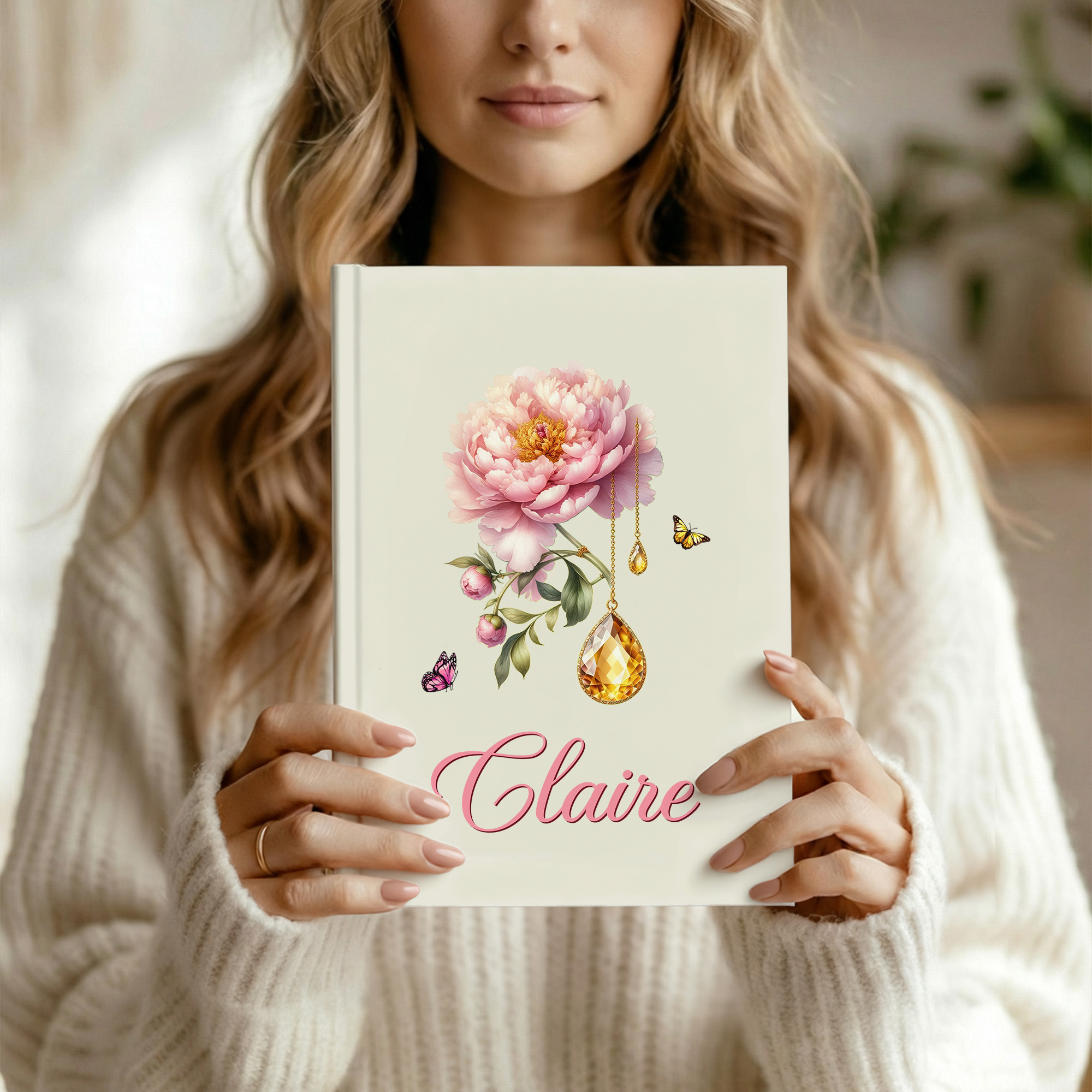 Gemstone Birth Flower Design - The cover features a delicate birth flower paired with a gemstone illustration, creating a dainty and meaningful look that feels personal yet elegant. The multicolor artwork adds charm without being overwhelming, perfect for everyday writing.