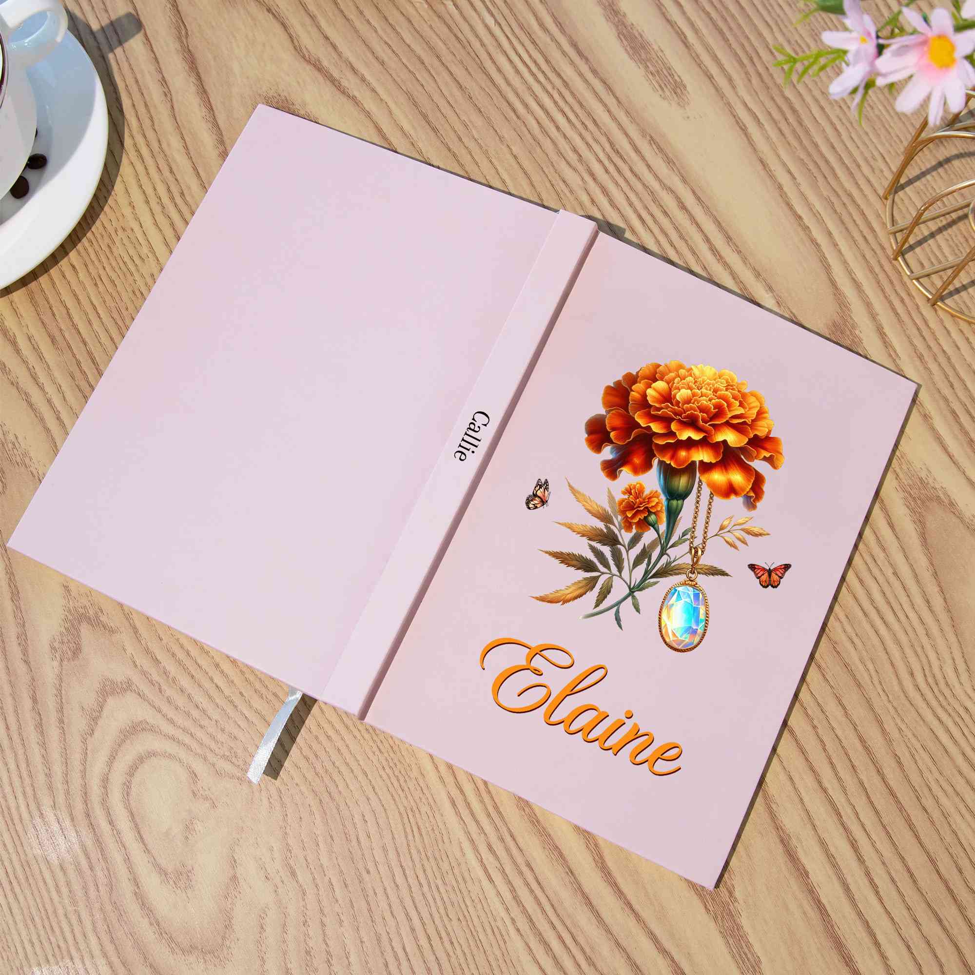 Personalized Name - Each notebook is customized with a name and a matching birth flower, turning it into a one-of-a-kind piece. The clean lettering blends naturally with the floral design, giving the journal a thoughtful and refined finish.
